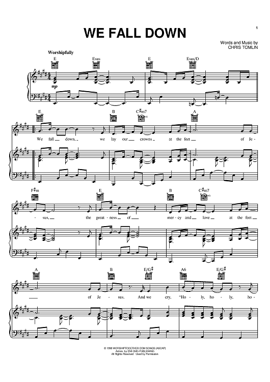 Digital Sheet Music for We Fall Down by Chris Tomlin, Kutless, Passion Band scored for Piano/Vocal/Chords; id:386649