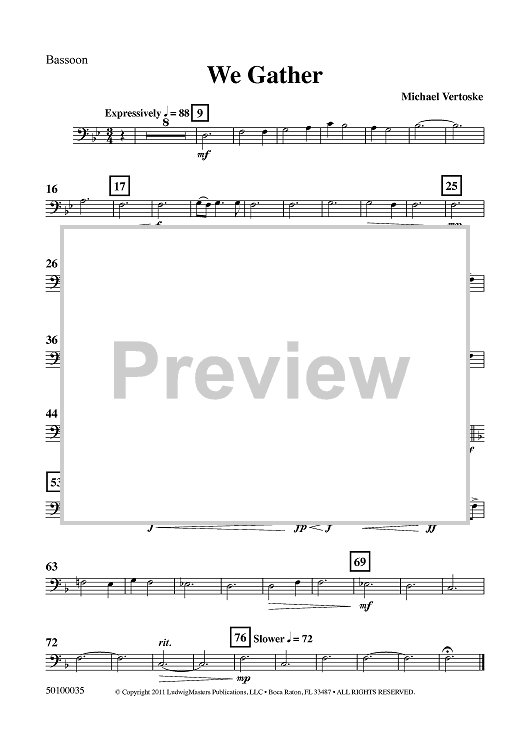 Digital Sheet Music for We Gather - Bassoon by , Michael Vertoske, Adrianus Valerius scored for Developing Band; id:437205