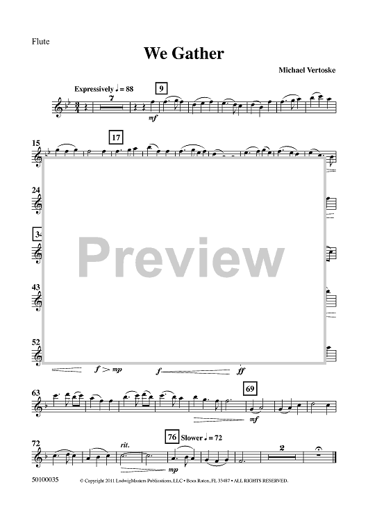 Digital Sheet Music for We Gather - Flute by , Michael Vertoske, Adrianus Valerius scored for Developing Band; id:437203