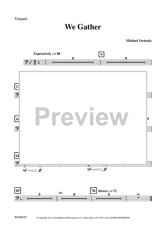 Digital Sheet Music for We Gather - Timpani by , Michael Vertoske, Adrianus Valerius scored for Developing Band; id:437221