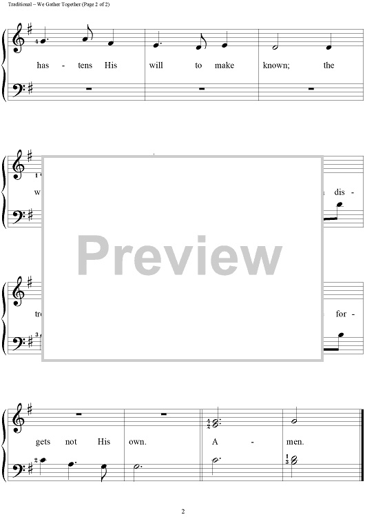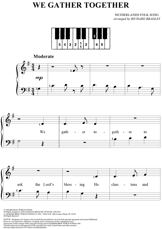 Digital Sheet Music for We Gather Together by Richard Bradley, Traditional scored for Five Finger Piano/Vocal; id:261994