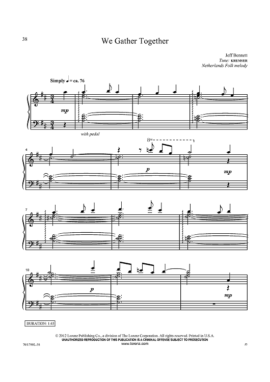 Digital Sheet Music for We Gather Together by Netherlands Folk Melody, Jeff Bennett scored for Piano Solo; id:433782