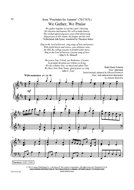 Digital Sheet Music for We Gather, We Praise by Various, Ruth Elaine Schram scored for Piano Solo; id:434607