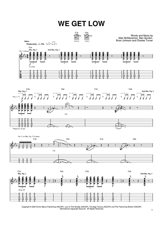 Digital Sheet Music for We Get Low by The Dead 60s, Ben Gordon, Brian Johnson, Matt McManamon, Charles Turner scored for Guitar Tab; id:393971