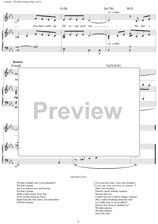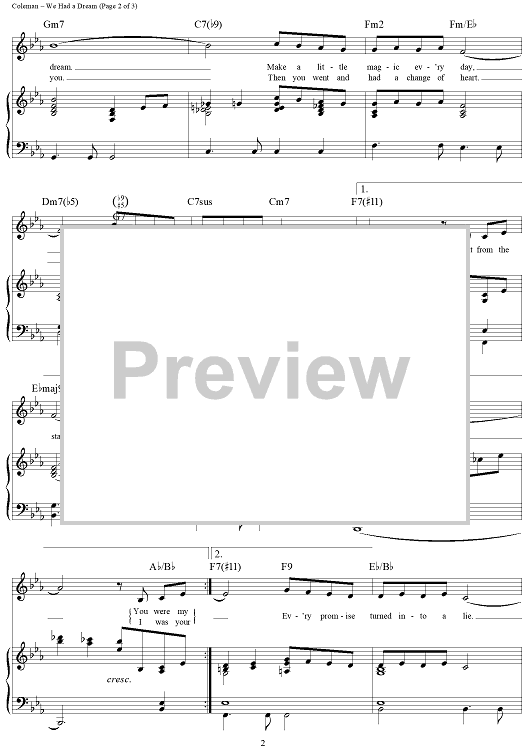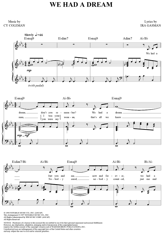 Digital Sheet Music for We Had A Dream by Cy Coleman, Ira Gasman scored for Piano/Vocal/Chords; id:311486