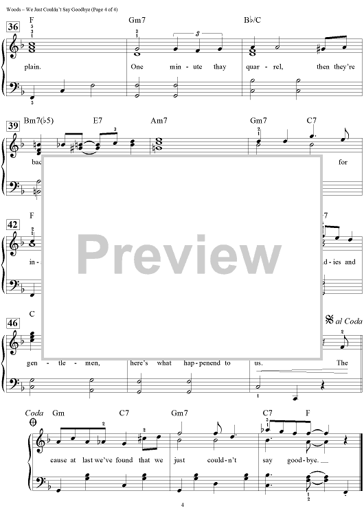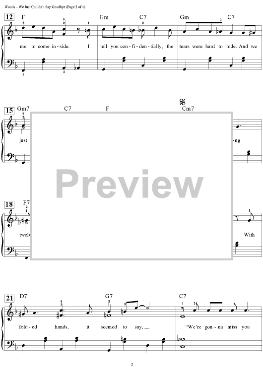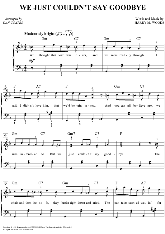 Digital Sheet Music for We Just Couldn't Say Goodbye by Dan Coates, Harry Woods scored for Easy Piano/Vocal/Chords; id:451991