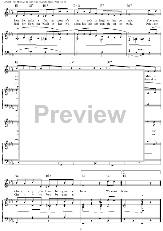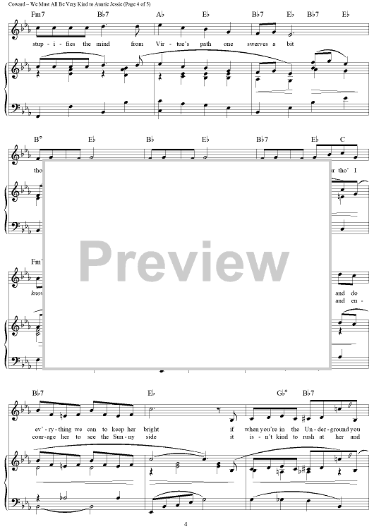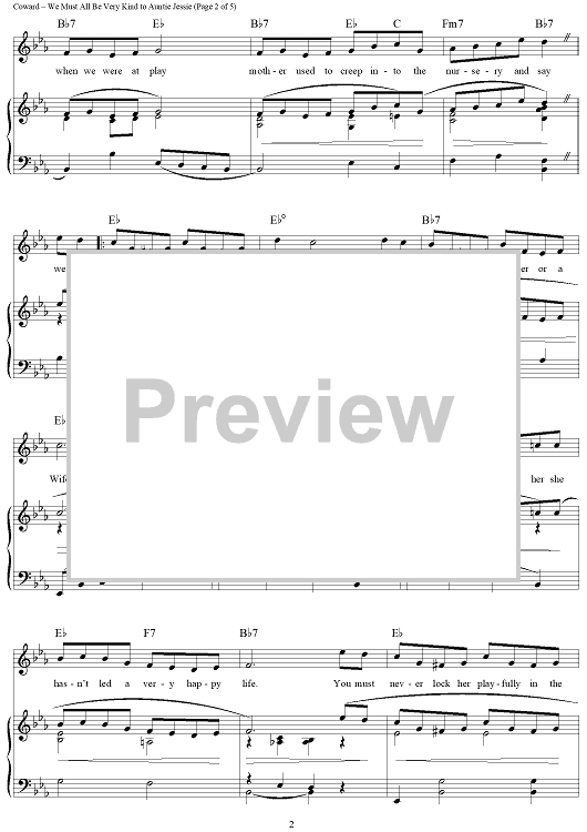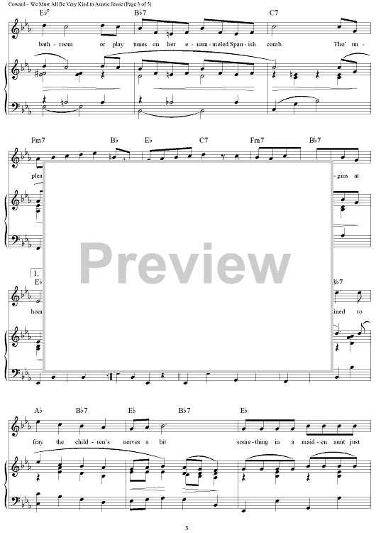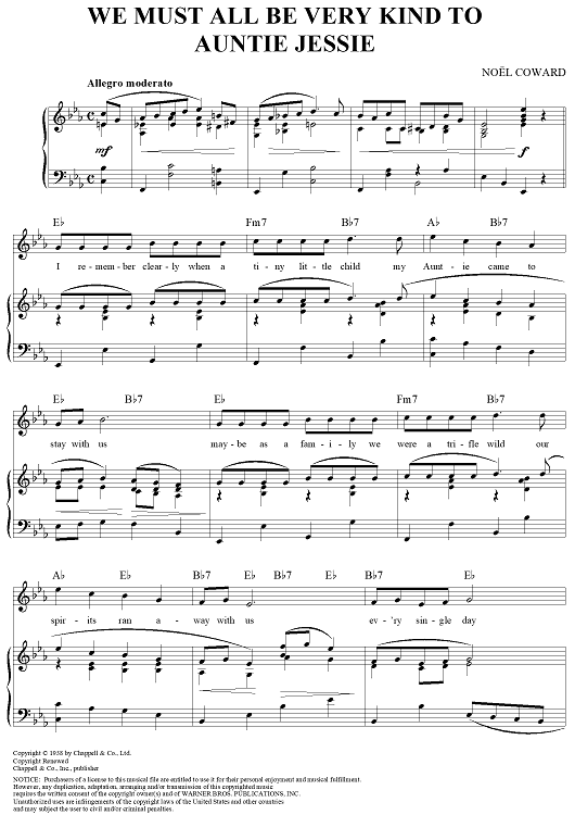 Digital Sheet Music for We Must All Be Very Kind to Auntie Jessie by Noel Coward scored for Piano/Vocal/Chords; id:356895