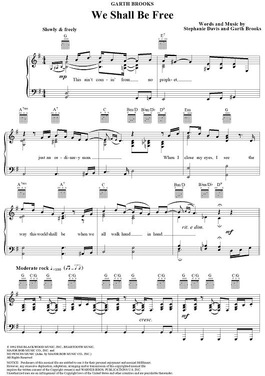 "We Shall Be Free" Sheet Music by Garth Brooks