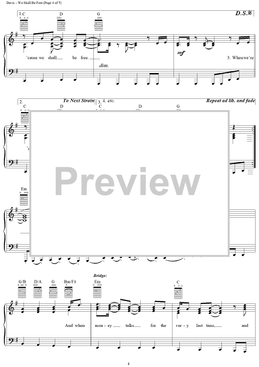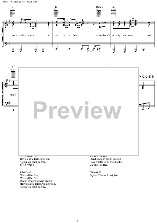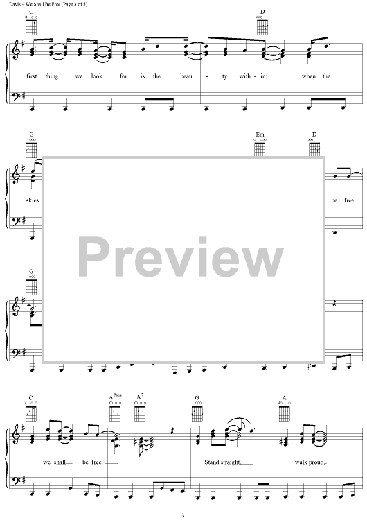 Digital Sheet Music for We Shall Be Free by Garth Brooks, Stephanie Davis scored for Piano/Vocal/Chords; id:109614
