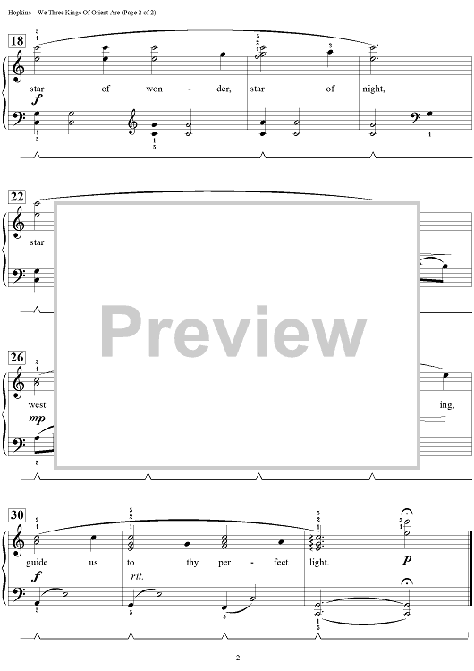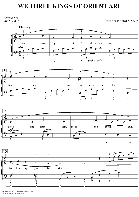 Digital Sheet Music for We Three King of Orient Are by Carol Matz, John Henry Hopkins, Jr. scored for Piano; id:453967