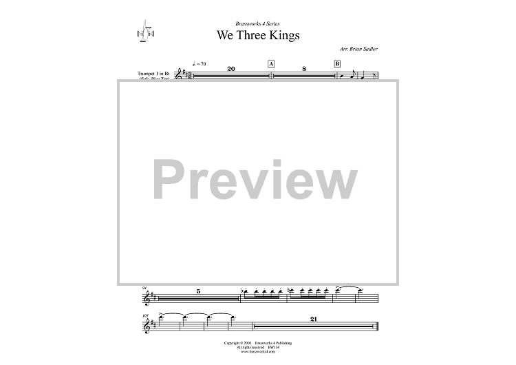 Digital Sheet Music for We Three Kings - Bb Trumpet 1/Piccolo Trumpet 1 by Traditional, Brian Sadler scored for Brass Ensemble; id:428454