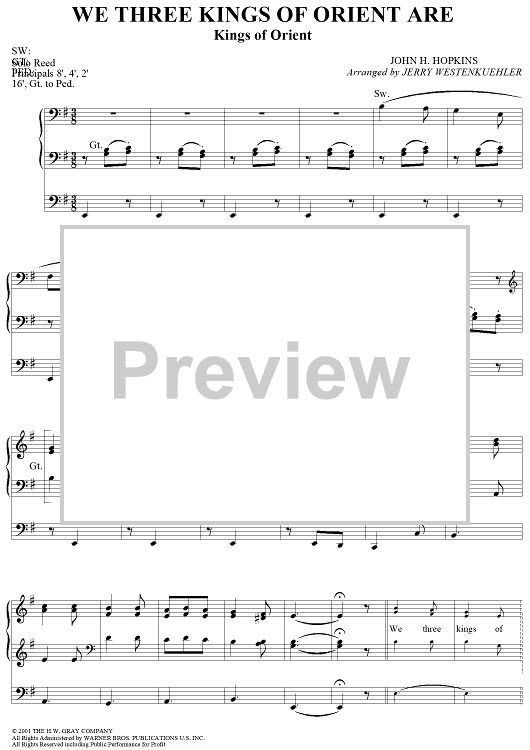 "We Three Kings of Orient Are" Sheet Music by John Henry Hopkins, Jr.