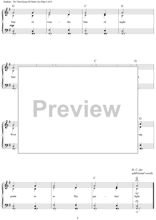 Digital Sheet Music for We Three Kings Of Orient Are by John Henry Hopkins, Jr. scored for Easy Piano/Vocal/Chords; id:430687