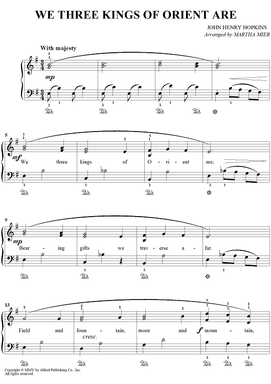 Digital Sheet Music for We Three Kings of Orient Are by Martha Mier, John Henry Hopkins scored for Early Intermediate Piano/Vocal; id:462643