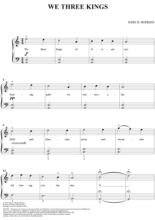 "We Three Kings" Sheet Music by John Henry Hopkins, Jr.