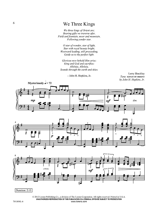 Digital Sheet Music for We Three Kings by Larry Shackley, John Henry Hopkins scored for Piano Solo; id:435237