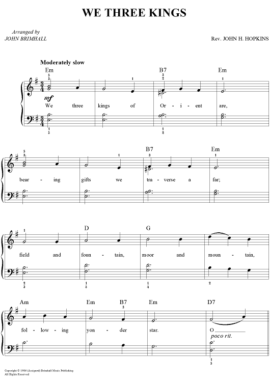 Digital Sheet Music for We Three Kings by John Brimhall, John Henry Hopkins scored for Easy Piano/Vocal/Chords; id:450567