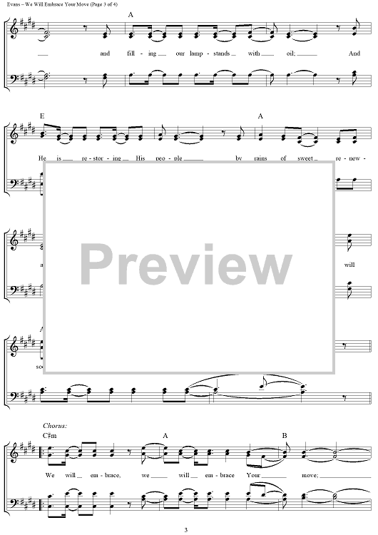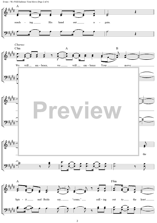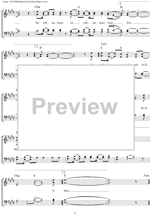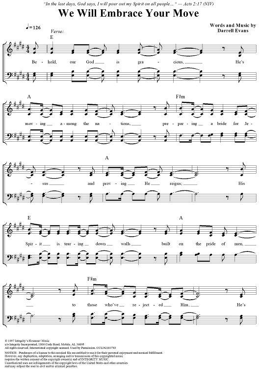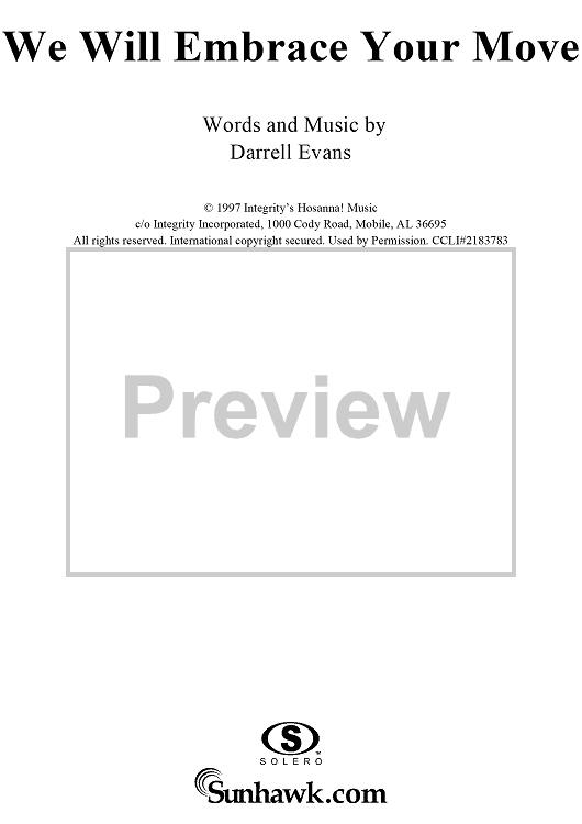 "We Will Embrace Your Move" Sheet Music by Darrell Wayne Evans