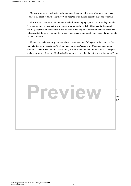Digital Sheet Music for We Will Overcome (some union verses) by Traditional scored for Piano/Vocal/Chords; id:260866