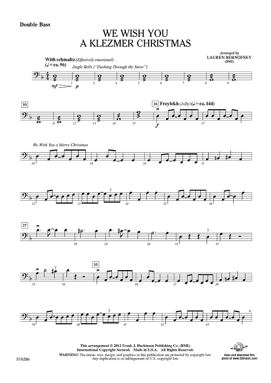 "We Wish You A Klezmer Christmas - Double Bass" Sheet Music by Lauren Bernofsky