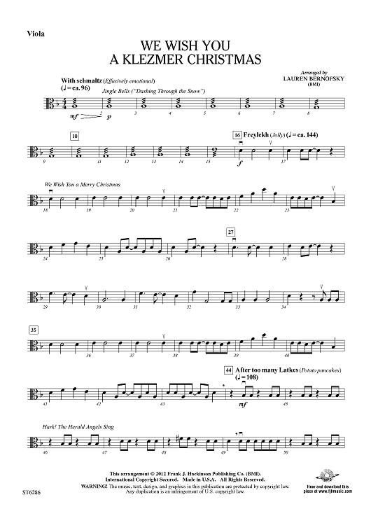 "We Wish You A Klezmer Christmas - Viola" Sheet Music by Lauren Bernofsky