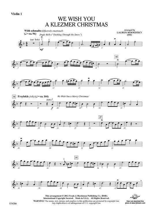 "We Wish You A Klezmer Christmas - Violin 1" Sheet Music by Lauren Bernofsky