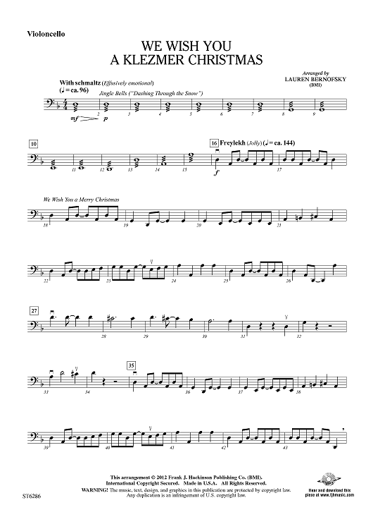 Digital Sheet Music for We Wish You A Klezmer Christmas - Violoncello by Lauren Bernofsky scored for String Orchestra; id:432111