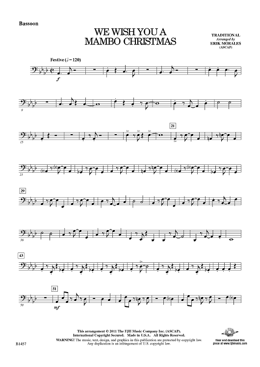 Digital Sheet Music for We Wish You a Mambo Christmas - Bassoon by Traditional, Erik Morales scored for Concert Band; id:425282