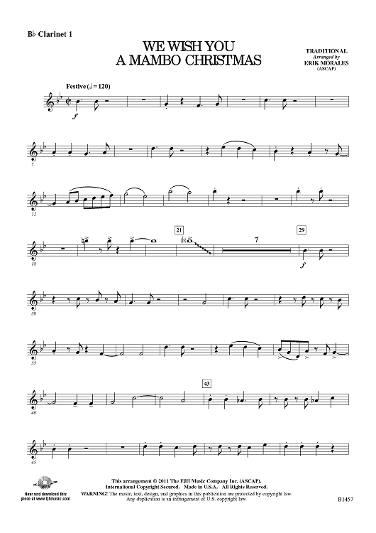 Digital Sheet Music for We Wish You a Mambo Christmas - Bb Clarinet 1 by Traditional, Erik Morales scored for Concert Band; id:425283