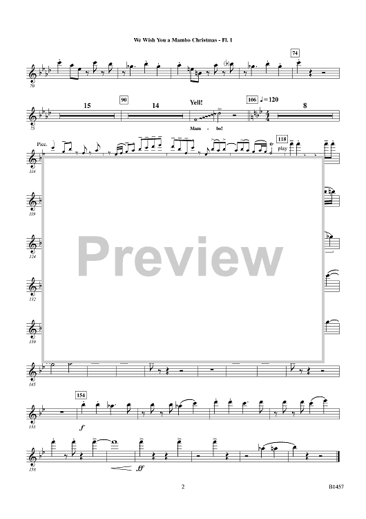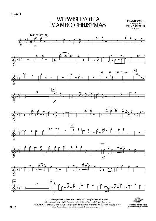 Digital Sheet Music for We Wish You a Mambo Christmas - Flute 1 by Traditional, Erik Morales scored for Concert Band; id:425279