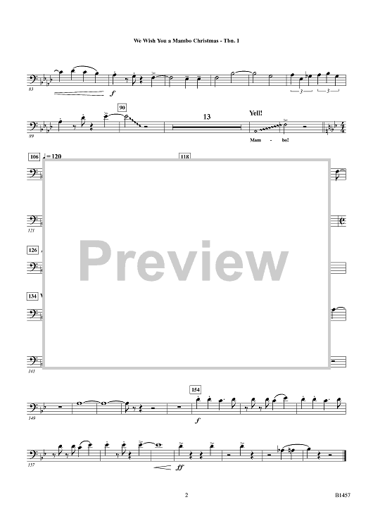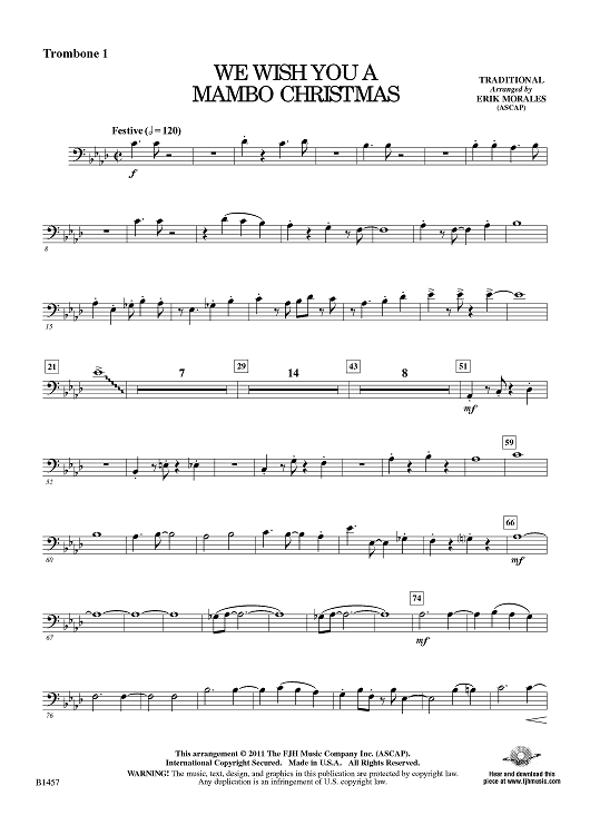 Digital Sheet Music for We Wish You a Mambo Christmas - Trombone 1 by Traditional, Erik Morales scored for Concert Band; id:425296