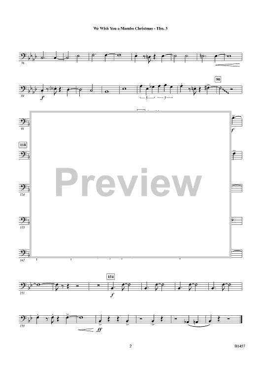 Digital Sheet Music for We Wish You a Mambo Christmas - Trombone 3 by Traditional, Erik Morales scored for Concert Band; id:425298