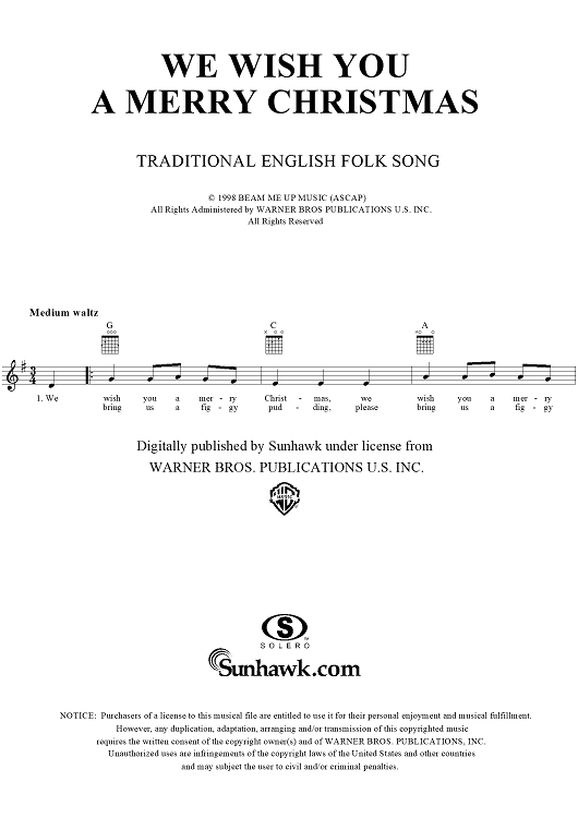 "We Wish You a Merry Christmas" Sheet Music by Traditional