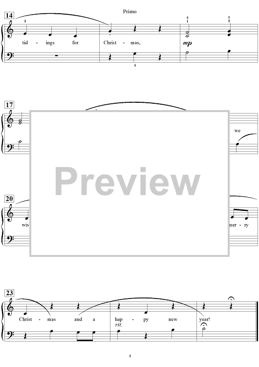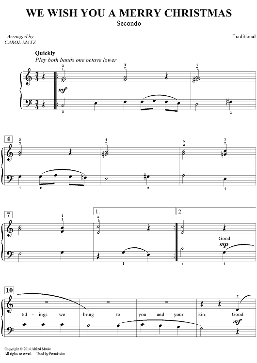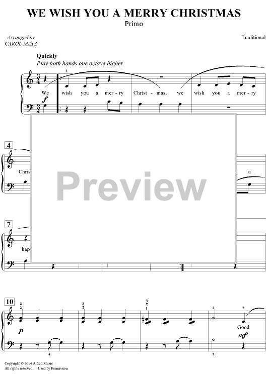 Digital Sheet Music for We Wish You a Merry Christmas by Carol Matz, Traditional scored for 1 Piano, 4 Hands; id:454172