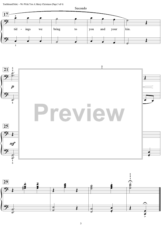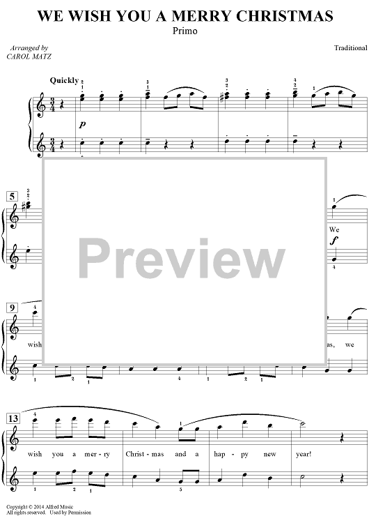 Digital Sheet Music for We Wish You A Merry Christmas by Carol Matz, Traditional scored for 1 Piano, 4 Hands; id:454291