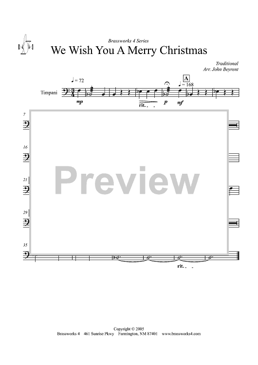 Digital Sheet Music for We Wish You a Merry Christmas - Timpani by John Beyrent, Traditional scored for Brass Octet/Percussion; id:319779