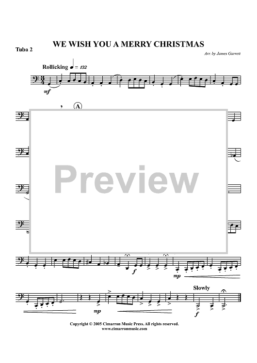 Digital Sheet Music for We Wish You a Merry Christmas - Tuba 2 by James Garrett scored for Tuba Quartet; id:315575