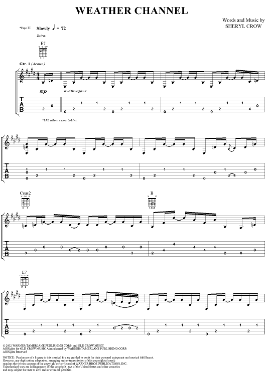 Digital Sheet Music for Weather Channel by Sheryl Crow scored for Guitar Tab/Vocal; id:292061