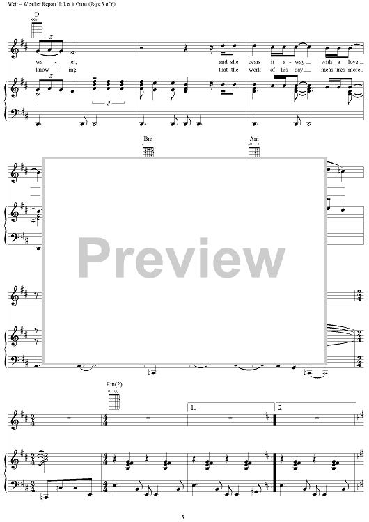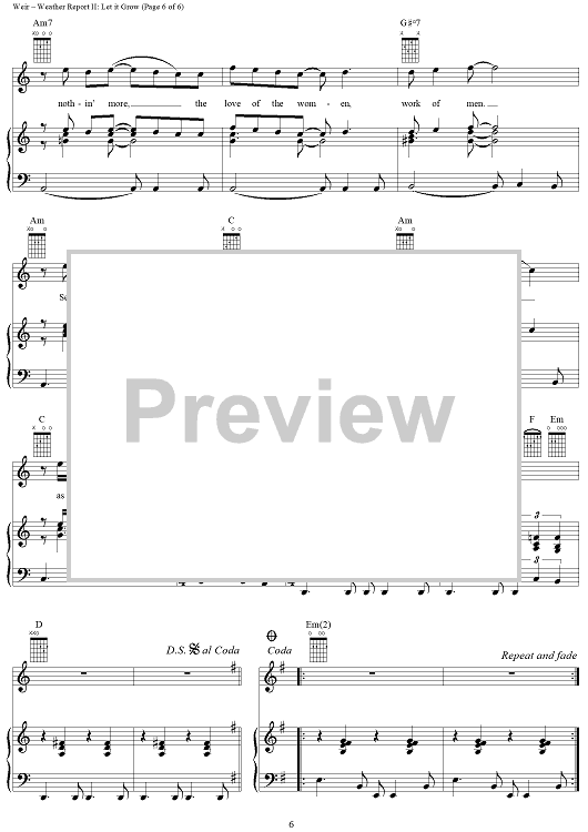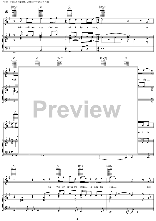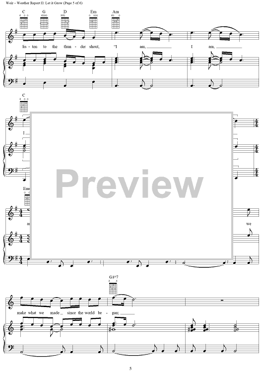 Digital Sheet Music for Weather Report Suite, Part 2: Let It Grow by Bob Weir, John Perry Barlow, Grateful Dead scored for Piano/Vocal/Chords; id:220376
