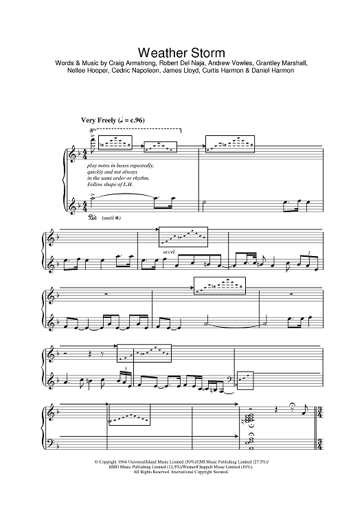 Digital Sheet Music for Weather Storm by Nellee Hooper, Craig Armstrong, Curtis Harmon, Daniel Harmon, James Lloyd, Grantley Marshall, Robert Del Naja, Cedric Napoleon, Andrew Vowles scored for Piano; id:386377