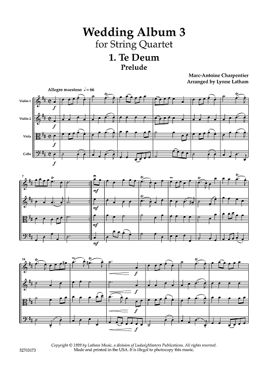Digital Sheet Music for Wedding Album 3 - Score by Various, Lynne Latham scored for String Quartet; id:461032