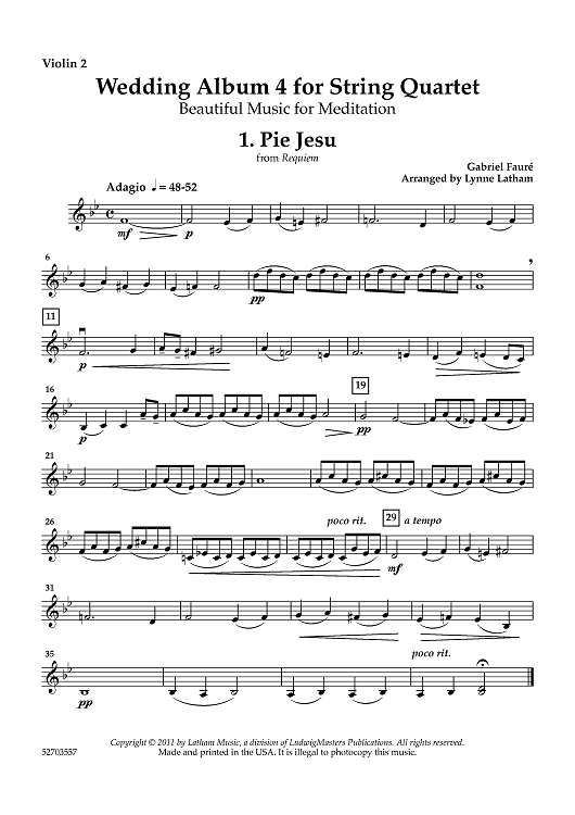 Digital Sheet Music for Wedding Album 4 - Violin 2 by Various, Lynne Latham scored for String Quartet; id:461195
