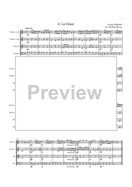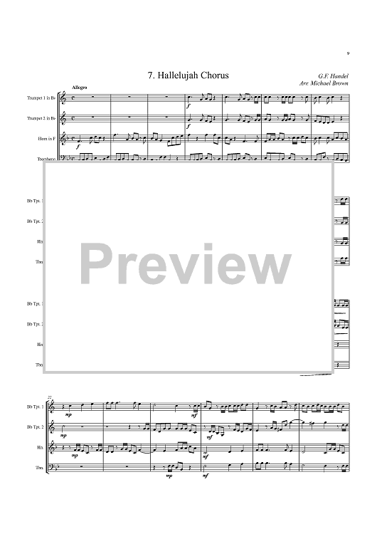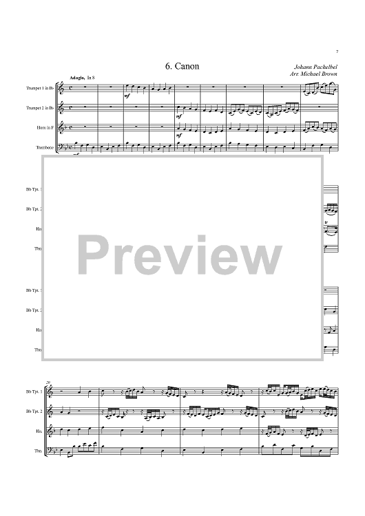 Digital Sheet Music for Wedding Album for Brass Quartet - Score by George Frideric Handel, Felix Mendelssohn, Richard Wagner, Jeremiah Clarke, Johann Pachelbel, Georg Philipp Telemann, William Henry Monk, Michael Brown scored for Brass Quartet; id:364208