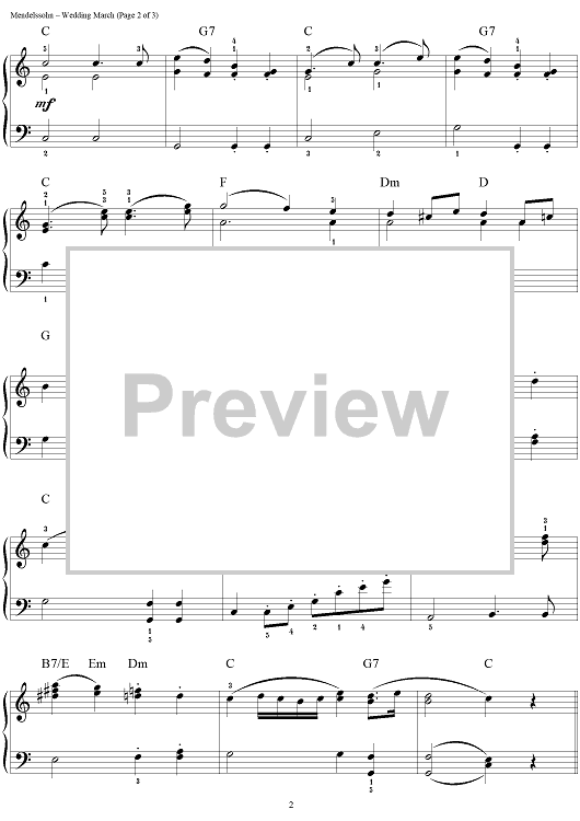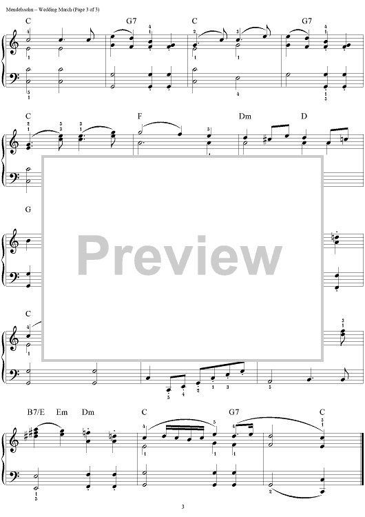 Digital Sheet Music for Wedding March, from "A Midsummer Night's Dream" by Felix Mendelssohn, John Brimhall scored for Easy Piano; id:252124