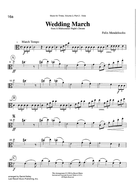 Digital Sheet Music for Wedding March - from A Midsummer Night's Dream - Part 2 Viola by , Felix Mendelssohn, Daniel Kelley scored for Instrumental Trio; id:422614
