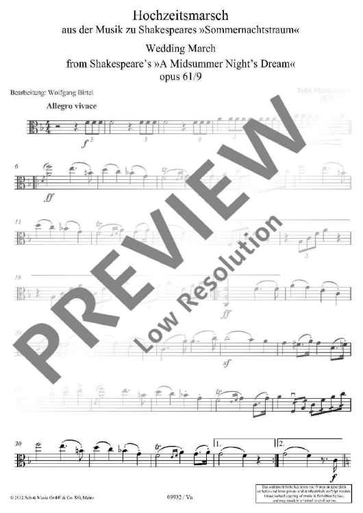 A wedding without a famous wedding march – unimaginable! Wagner's 'Bridal Chorus' from 'Lohengrin' and Mendelssohn's 'Wedding March' from the incidental music of 'A Midsummer Night's Dream' vie for the favour of bridal couples and wedding parties. If, however, the music shall be festive, Mendelssohn's background music for the wedding ceremony remains first choice. In order that the march cannot only be performed with the organ but also with a melodic instrument with piano (or organ) accompaniment, the present editions provide easy-to-play arrangements.