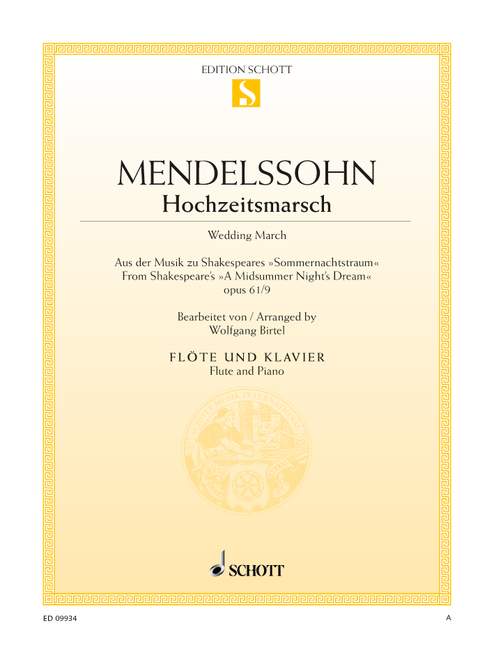 A wedding without a famous wedding march – unimaginable! Wagner's 'Bridal Chorus' from 'Lohengrin' and Mendelssohn's 'Wedding March' from the incidental music of 'A Midsummer Night's Dream' vie for the favour of bridal couples and wedding parties. If, however, the music shall be festive, Mendelssohn's background music for the wedding ceremony remains first choice. In order that the march cannot only be performed with the organ but also with a melodic instrument with piano (or organ) accompaniment, the present editions provide easy-to-play arrangements.