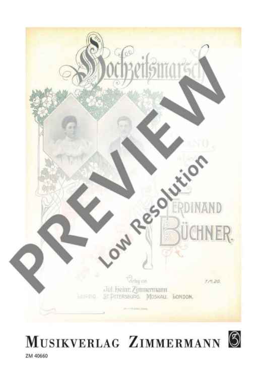 Ferdinand Büchner schrieb den Hochzeitsmarsch für das junge Ehepaar Karla und Maximilian Marcarius Kästner. Karla war die Nichte des Verlegers Julius Heinrich Zimmermann und Maximilian Kästner ein weitläufiger Verwandter von ihm. Kästner war Angestellter im Musikhaus Zimmermann in Leipzig, leitete ab 1897 die Londoner Filiale des Unternehmens und machte sich 1903 mit einer eigenen Autopiano-Fabrik selbständig. An dieser Stelle sei verwiesen auf eine Zimmermann-Publikation seines Sohnes, des Pianisten Marcario Santiago Kastner, der bei Zimmermann 1973 eine Sammlung mit Werken von Cabezón veröffentlicht hat (ZZM 18930).