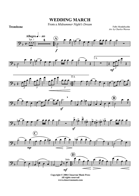 "Wedding March - Trombone" Sheet Music by Felix Mendelssohn