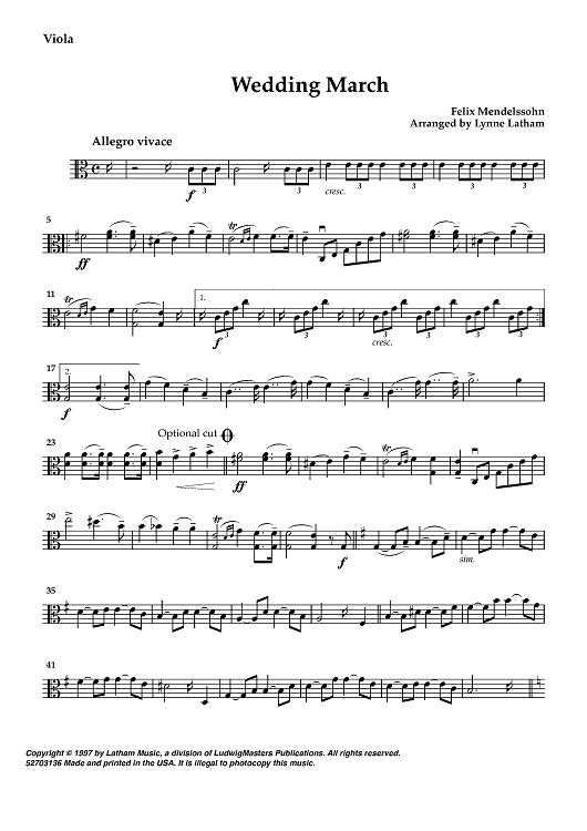 "Wedding March - Viola" Sheet Music by Felix Mendelssohn